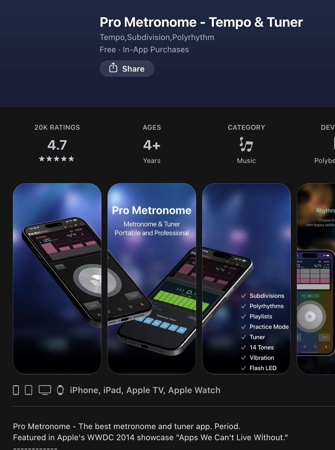 Pro Metronome-Tempo &Tuner (available in apple app store, Google play. FREE)